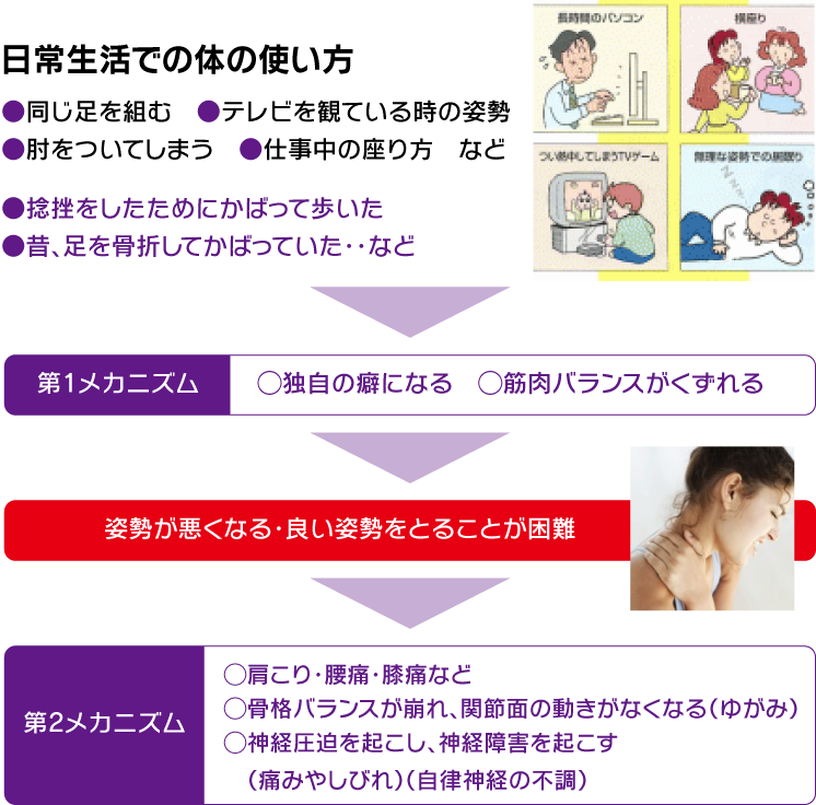 姿勢を理想的な状態にすることで、様々な障害を解消し自然治癒力の働きを促進させ、
